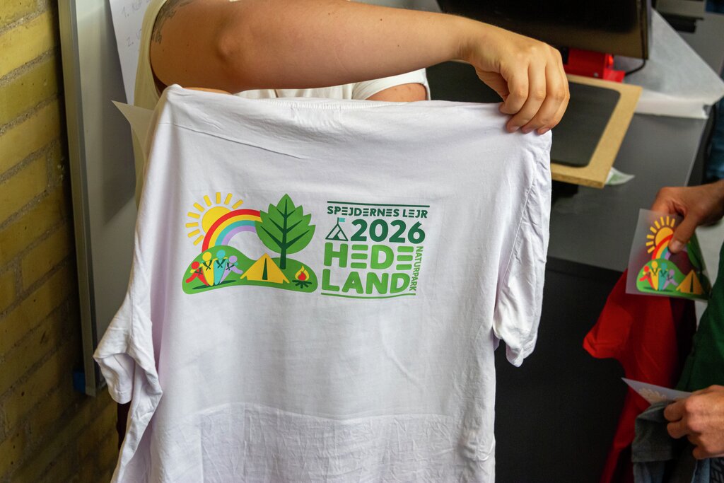 250 spejdere var samlet fra den 19.-21. september 2025 til 2. planlægningsweekend op til spejdernes lejr 2026. Deltagerne arbejdede på tværs af udvalg med milepælsplan og andre relevante emner til planlægning af lejren. Der var mulighed for at lave tryk på egne eller genbrugs- trøjer. Foto Katja Eriksen